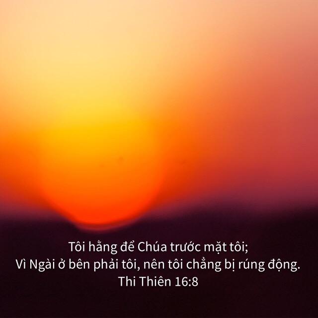 „Tôi hằng để CHÚA trước mặt tôi; Vì Ngài ở bên phải tôi, nên tôi chẳng bị rúng động.“ Thi-thiên‬ ‭16:8‬ ‭